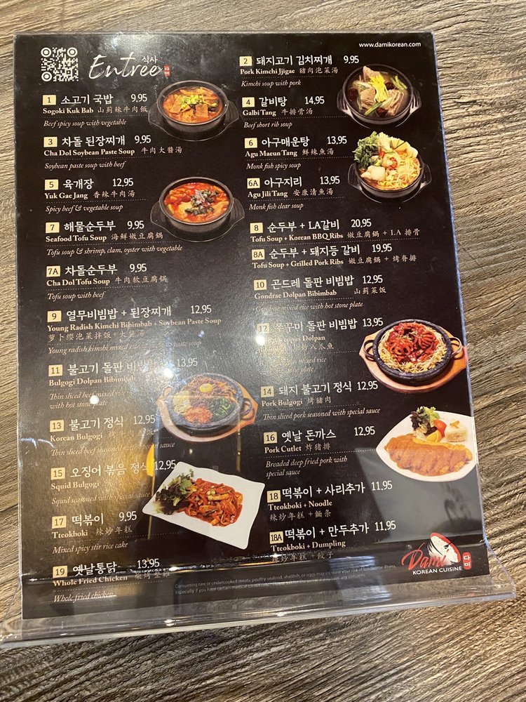 Located in Carrollton, TX, Dami is a Korean gem offering a delightful dining experience. With friendly service and a clean atmosphere, Dami stands out for its authentic cuisine and generous portions. The menu features traditional favorites like Beef bibimbap in a stone bowl, Galbijjim, and Spicy Galbi Jjim, all cooked to perfection and bursting with flavor. Standout dishes include the Skate Fish Jjim, a surprising and delightful combination of savory flavors that will leave you coming back for more. The handmade cold noodles and kimchi jigae soup are a must-try for those looking for a satisfying meal. Don't miss out on the complimentary banchan and flavorful soups that accompany the main dishes. Dami is not just a place to eat; it's a destination for experiencing genuine Korean cuisine.